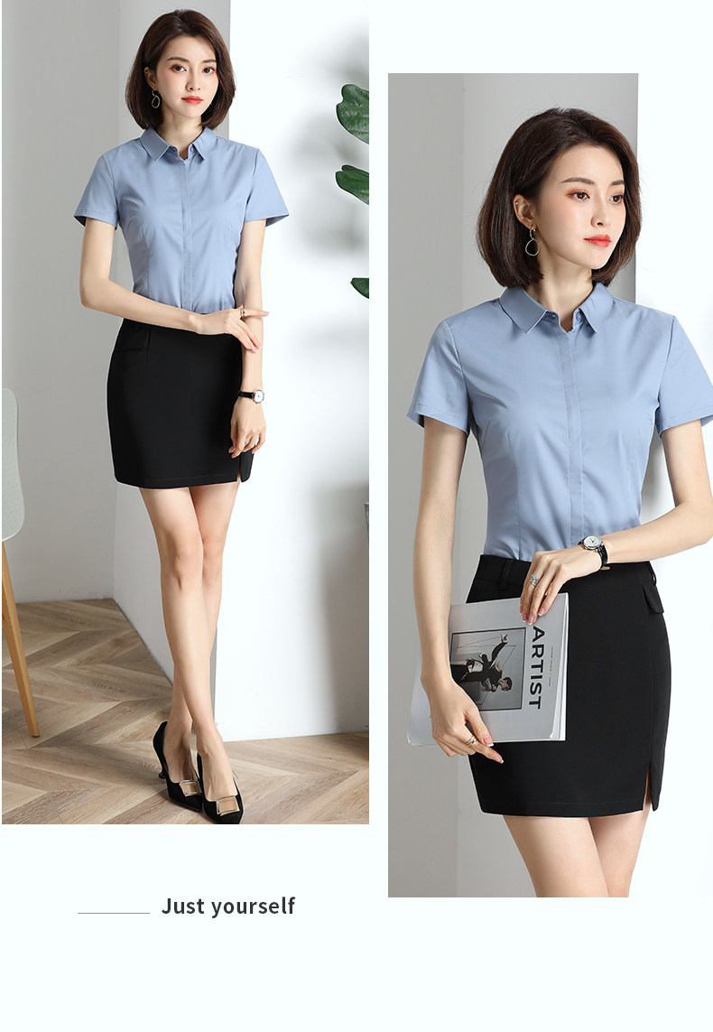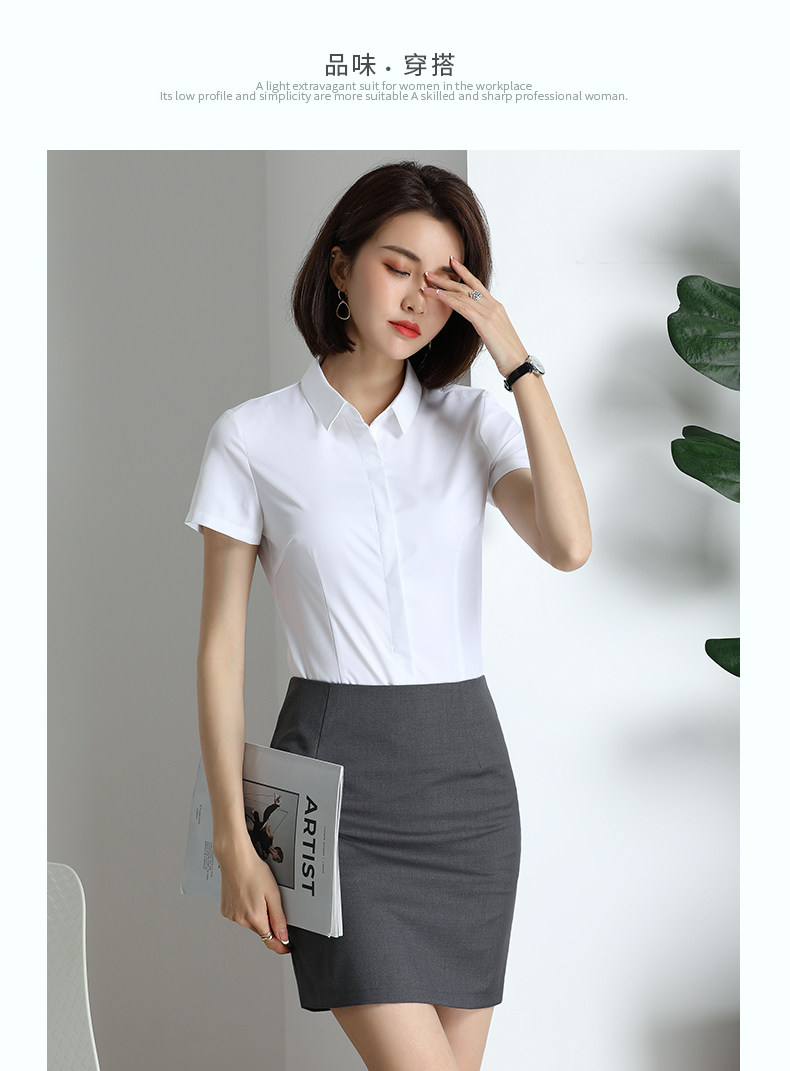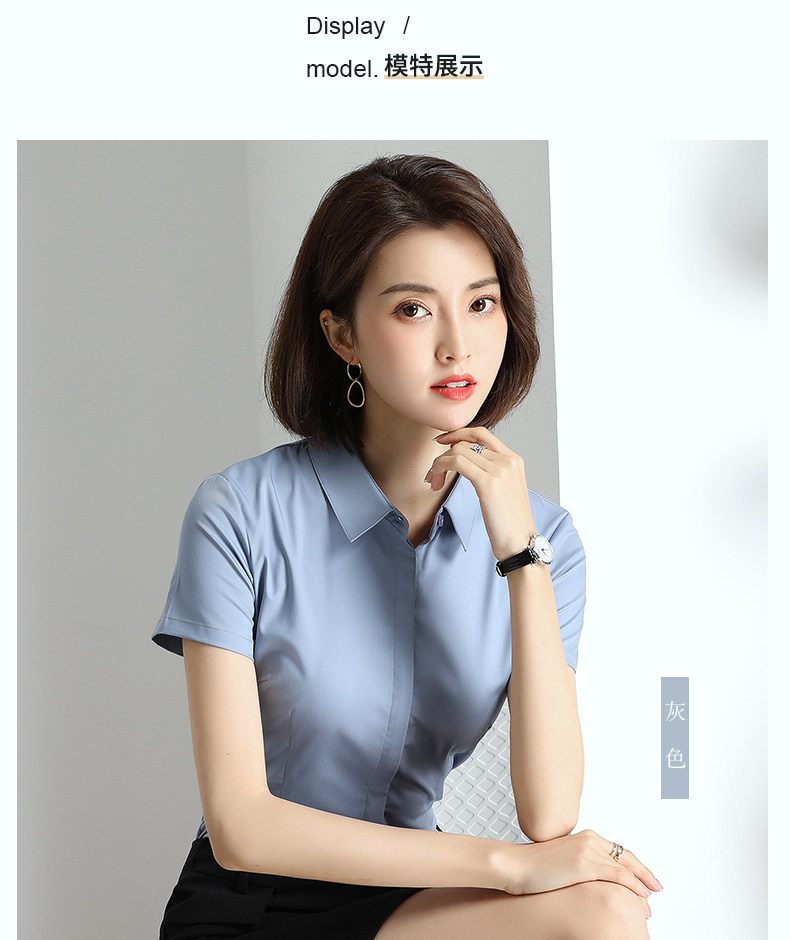 灰色衬衫女短袖职业夏季薄款高端面试正装酒店经理工作服套装衬衣