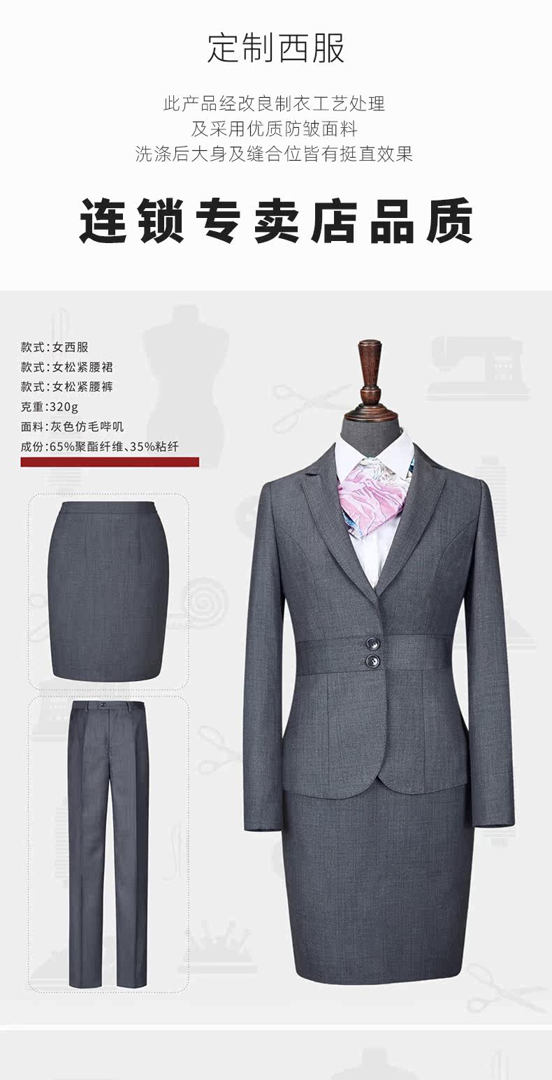 高端定制仿毛西服套装女酒店经理教师工装职业正装灰色西装工作服